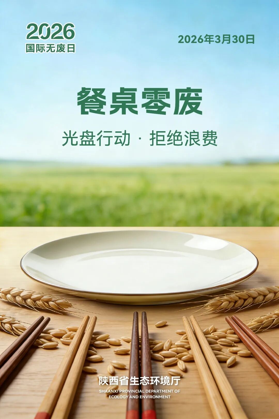 2026年陕西省“国际无废日”宣传主题为“餐桌零废,陕西先行”。
